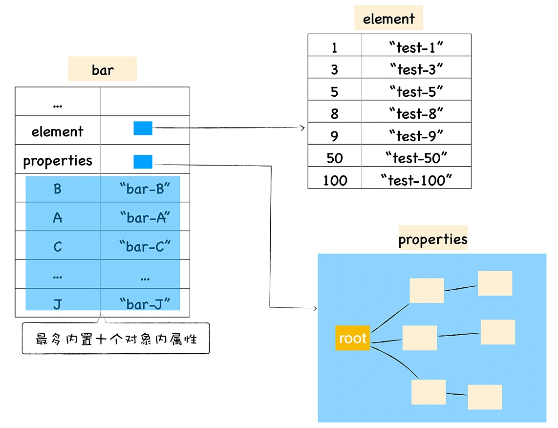 由于字节码对一个变量做操作,并不一定是确定的类型,所以map与offset可能为多项,超过4个隐藏类,就会使用哈希表来进行存储,否则使用线性结构