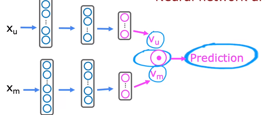 $$J=\sum_{(i,j):r(i,j)=1}(v_u^{(j)}\cdot v_m^{(i)}-y^{(i,j)})^2\color{red}{+\text{NN regularization term}}$$